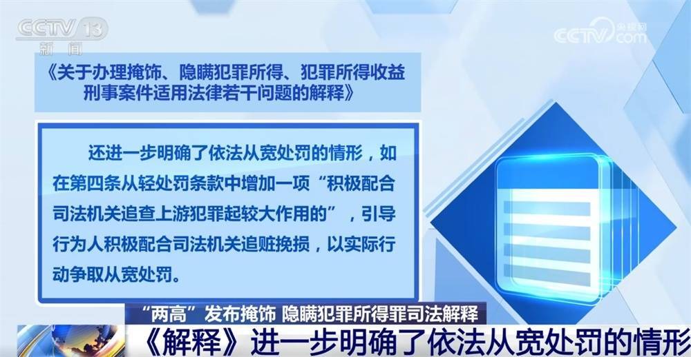r央视网消息:8月25日,最高人民法院、最高人民检察院共同发布《关于办理掩饰、隐瞒犯罪所得、犯罪所得收益刑事案件适用法律若干问题的解释》。据了解,掩饰、隐瞒犯罪所得罪是实践中案件数量最大的洗钱类犯罪,也是与电信网络诈骗、网络赌博等犯罪密切关联的下游犯罪。《解释》主要内容有哪些?和以前相比有哪些变化?来看记者的采访。